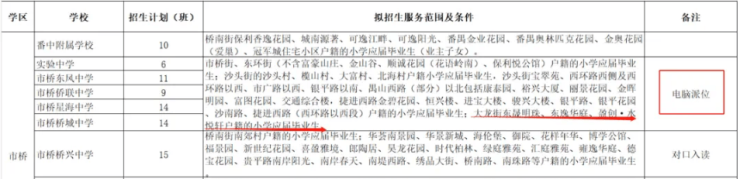 初中则按电脑派位,包括番中附属学校、市桥桥城中学、实验中学、市桥东风中学、市桥侨联中学、市桥星海中学。