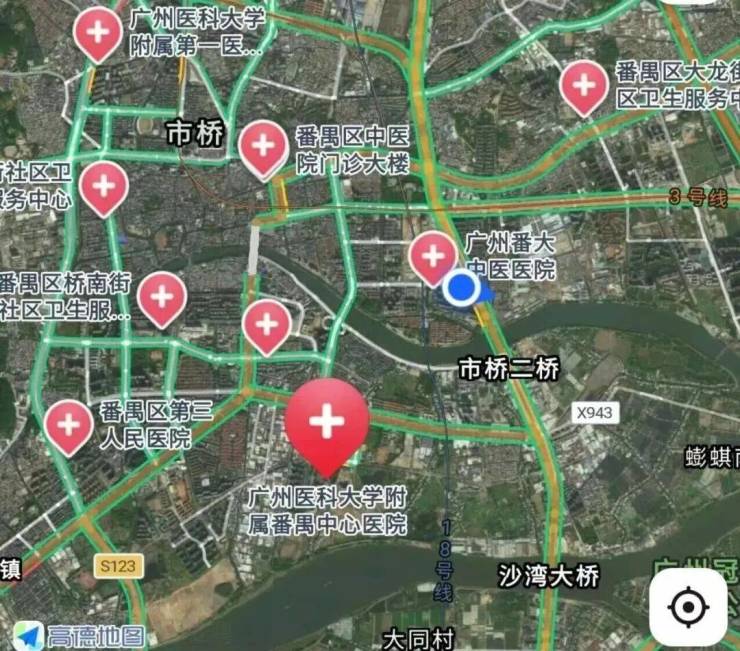 三甲广州市番禺区中心医院3公里、番禺中医院二甲何贤纪念医院、广东省口腔医院番禺分院。