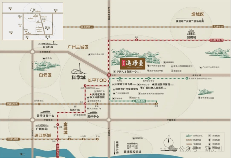 而知识城,乃国家级双边合作项目,聚集1600多家企业,年产值约3800亿元。这种板块辐射的带动能量是巨大的。不夸张地说,东部科技最重要的两个板块,将成为广州极具看点的科创高地,而正处于两大规划的链接中心的长岭新城,虹吸着城市发展的利好。