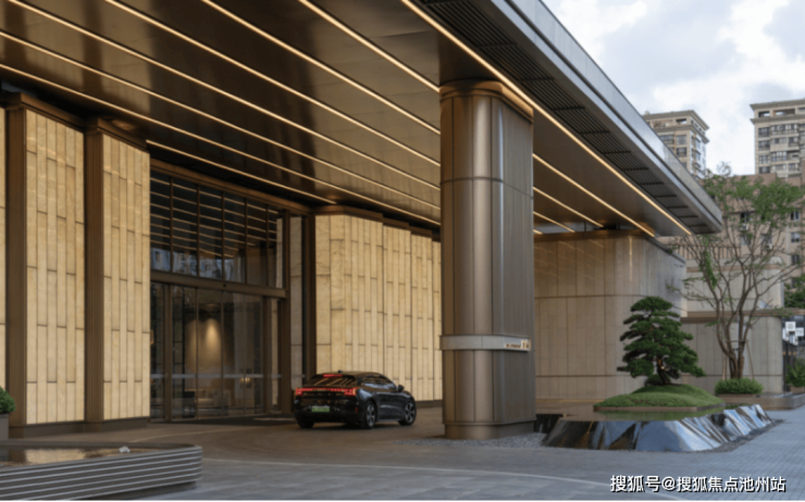 这座由大量奢石打磨堆砌,横跨约48米的奢宅门庭,就是温州润府惊艳实景的“首映之作”,环岛式落客区、素雅奢石翠白玉壁、百吨安哥拉黑石+罗汉松门前主景……全然一幅“温州顶豪楼盘”才能拥有的规格。