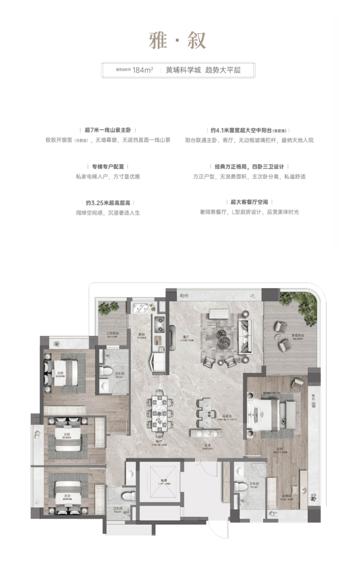 约3.25-3.5米层高设计,广州独有“端卧”设计