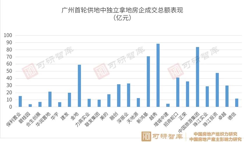 如在广州首轮供地中表现积极的越秀地产,其不仅独自斥资88.4亿元在广州拿下3宗地块,还与广州城建、广州交通置业等企业组成联合体,合作拿下5宗地块,全口径投资金额为89.1亿元。