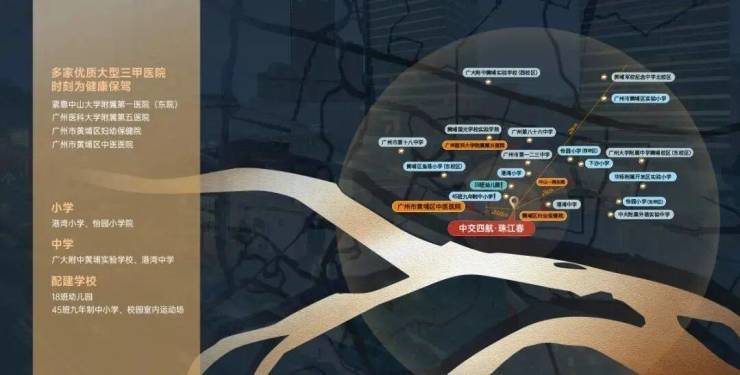 【华南师范大学附属中学】联同【黄埔区教育局】、【中交四航·珠江春】,三方共同在项目内打造一所九年制中小学,合计45个班,距离目前在售地块仅300米,步行即可到达。