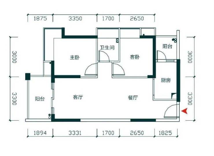 2房2厅1卫 + 双阳台