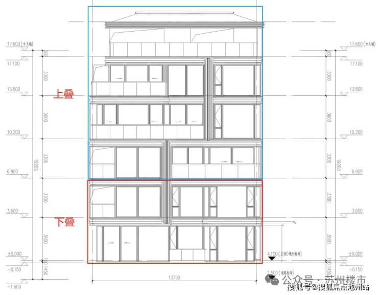 叠加产品为5F,下叠为1-2层,上叠为3-4-5层,且层层递进式露台,上叠顶层还有整层露台空间设计,使用率相当高。