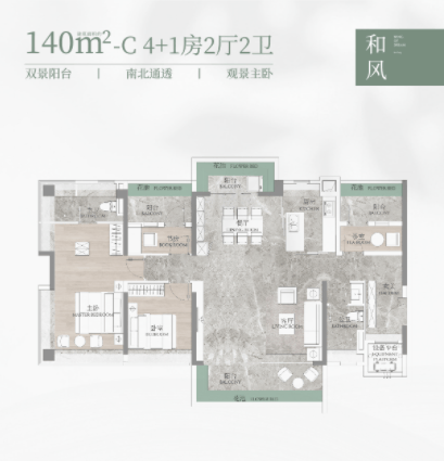 143㎡四房带有独立入户玄关,主卧套间配备步入式衣帽间与独立卫浴,公共区域预留茶室或书房空间,参考价格840万-920万;