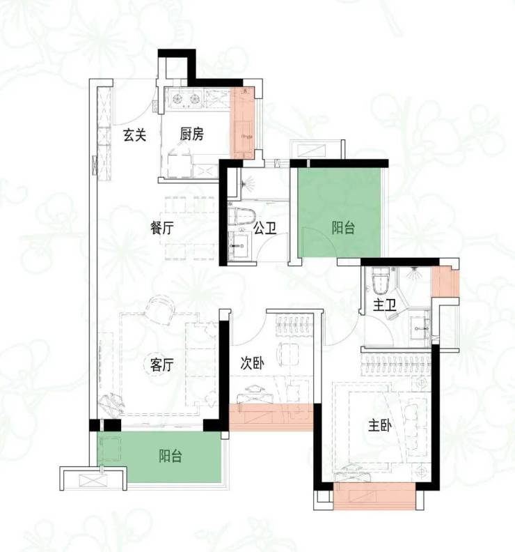 ▲建面约76㎡/3房2厅1卫