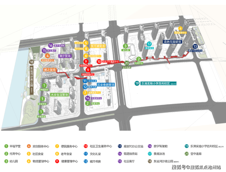 廊桥连接的不仅仅是各个子地块,同时还串联起了各个子地块之中的丰富生活配套: