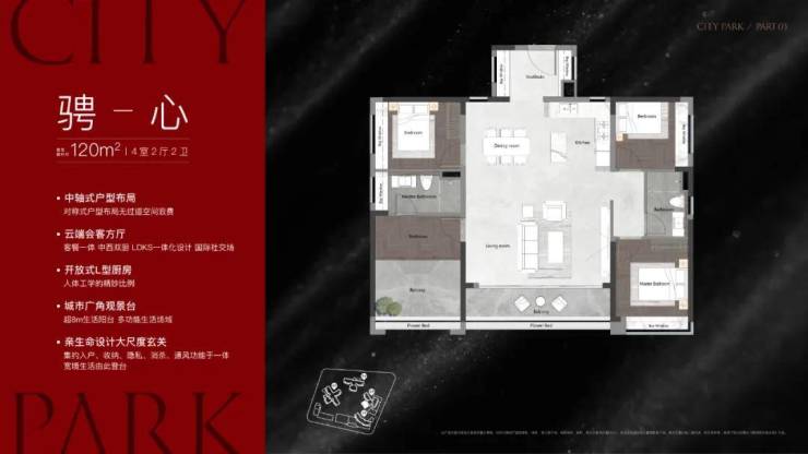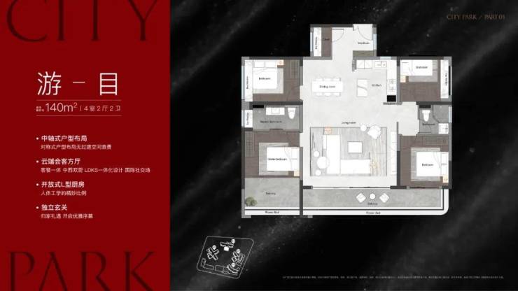 户型面积:约120-143平方米四房