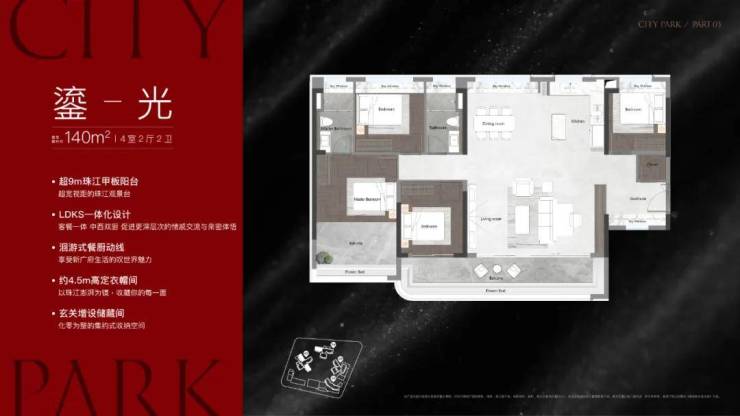享有稀缺的南向江景资源,大部分户型可直望珠江美景。