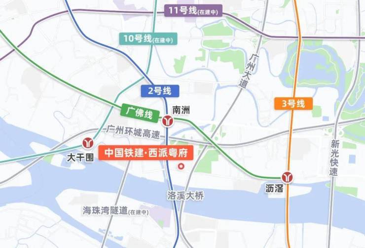 临近洛溪大桥、环城高速及广州大道南,便捷到达琶洲、珠江新城和金融城等重要区域。
