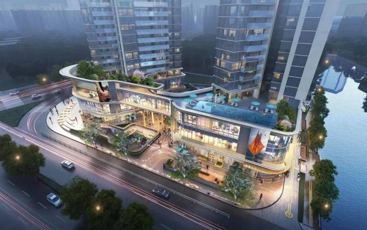 项目三层抬高设计让城市景与自然景巧妙融合,于此“半城繁华、半城诗意”转身即享。