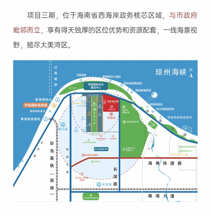 项目位置:位于海口西海岸长流起步区核心位置,秀英区长滨二路与滨海大道交汇处,市政府北门对面。