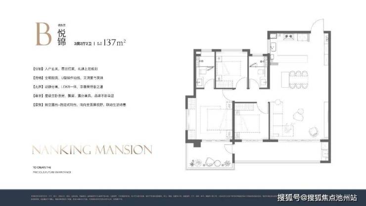 建面约137㎡三房两厅两卫,大合厅+开放式厨房,LDKB一体化设计,空间布局合理,主卧套房设计+挑空平台加持更惬意。