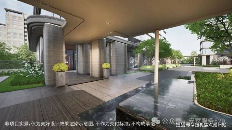 主题架空层与景观一体化设计,在功能、空间、形态上形成互动与互补,内部空间与外部景观良好融合;全域风雨连廊,功能上实现无风雨归家及游园,视线上随着脚步,沿途移步异景,当你归家时犹如穿越绿洲的旅行。(报建为景观廊架,后期存在改造的可能,以实际交付为准)