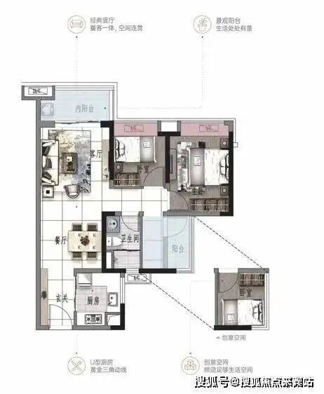 景观大阳台连通次卧--双套房设计,三代同堂更从容