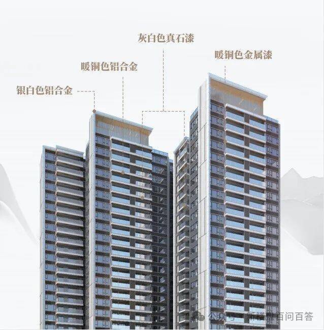 灰白色真石漆+玻璃幕墙的组合,细节处点缀暖铜色,呈现视觉上的美感与质感;楼冠格栅的疏密变化,折线造型设计宛如倒立的山峦形状,呼应远处的白云山轮廓线