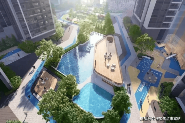 多元交互园林:空中运动花园、全龄亲子双游泳池、环氧跑道、稚趣IP乐园、城市会客厅等,亲子、社交、远动一应俱全;