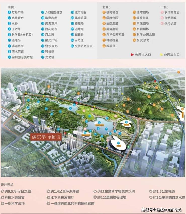 满京华·金硕项目直面占地约208万㎡的科学公园(在建中),近享深圳国际美术馆(在建中)、深圳科技馆新馆(在建中)、科学城体育中心(在建中)、光明文化艺术中心等市级文体配套;还坐拥狮山公园、约9.4万㎡的东周文化公园,约10万㎡的开明公园,约56万㎡的新城公园等丰富绿色生态资源。