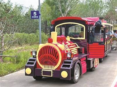 公园还贴心地准备了多人自行车、电瓶车和小火车,能代步还能增添不少乐趣。受娃们欢迎的小火车,最棒的是可以任意上下车,买一次票就能跟着小火车逛遍整个公园。