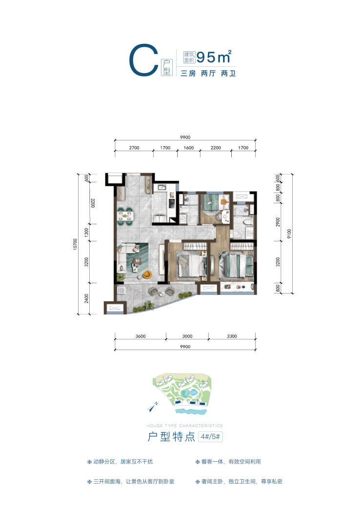 【户型】?约85-125㎡观山瞰海两居、三居