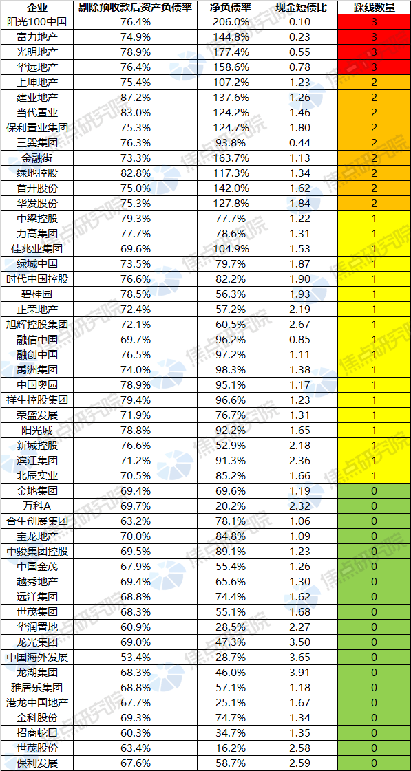 图1:截至目前50家上市房企踩线情况(排名不分先后)