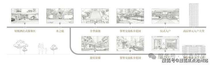 以“水”为脉,以“花”为引,串联“公共-半私密-私密”六进归家礼序,可游、可玩、可赏,让每一次归家都是一场度假之旅。