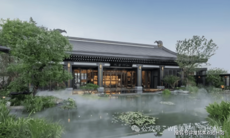 "三进五庭四院"园林,巧妙撷取张若虚《春江花月夜》的幽远意境,深研传世名画《四景山水图·春》的雅致场景,织就一片闲逸脱俗的东方美境。尤其是那方沿袭 "天圆地方"哲学理念打造的望湖水庭,天井垂瀑,琉璃景池,如梦如幻,引人入胜。