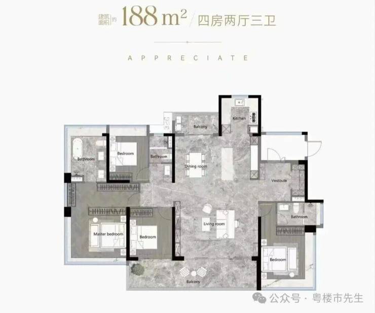 产品类型:103-188㎡(四房)