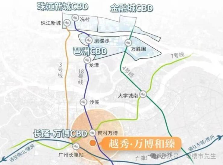 位于广州市番禺区鹤地塘边街3号,广州地铁7号线与地铁18号线交汇的南村万博站、以及与地铁3号线交汇的汉溪长隆站附近;坐落于番禺核心地段万博商圈,广州五大商圈之一,承接了广州未来10年的发展,前景无限!