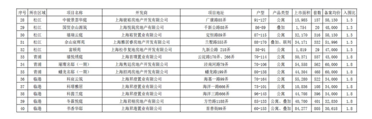 据悉,本次上市40个商品住房项目,共约136.1万平方米,合计12585套。分布在浦东、静安、杨浦、闵行、宝山、嘉定、奉贤、松江、青浦、临港10个区域。