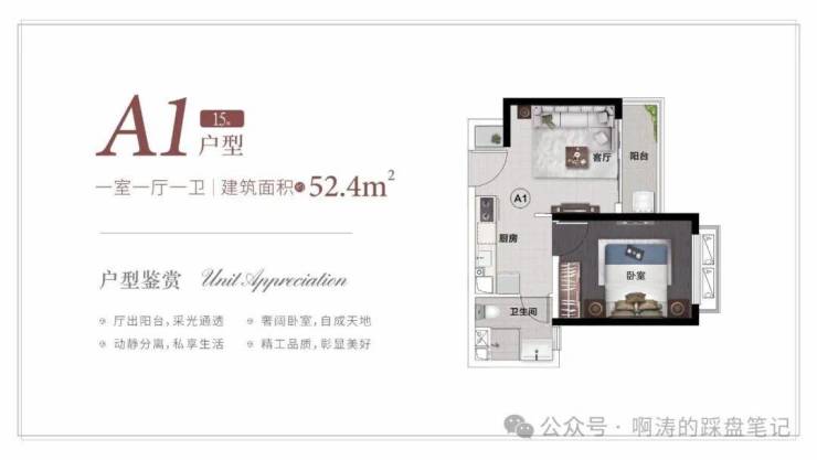 1.轻奢平层公寓 | 44㎡一室一厅一卫