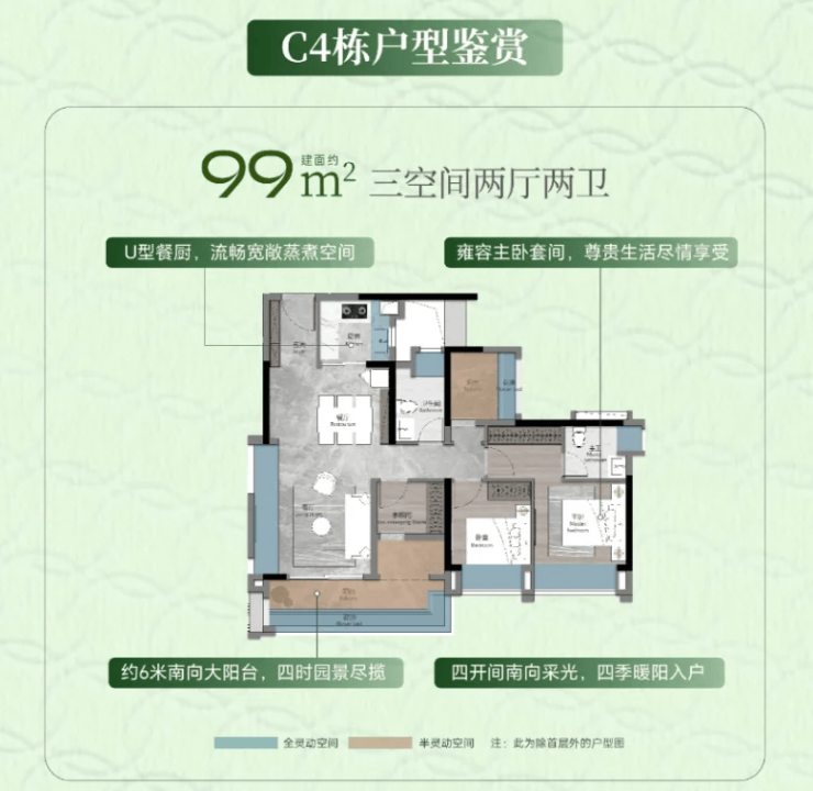 【建面99㎡4房】3室2厅2卫, 南朝向,楼栋分布于C3栋