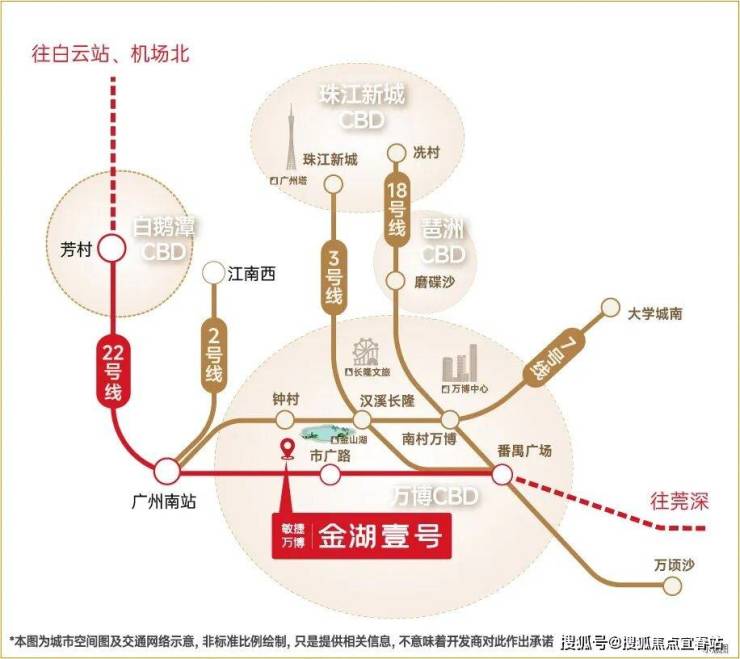 出门约800米即达市广路站(百度地图直线距离),1站番禺广场、2站万博中心、3站琶洲CBD、4站珠江新城;规划中26号线更是潜力可期。 新光快速、广台高速等“五纵五横”立体交通,畅连广州各核心城区。