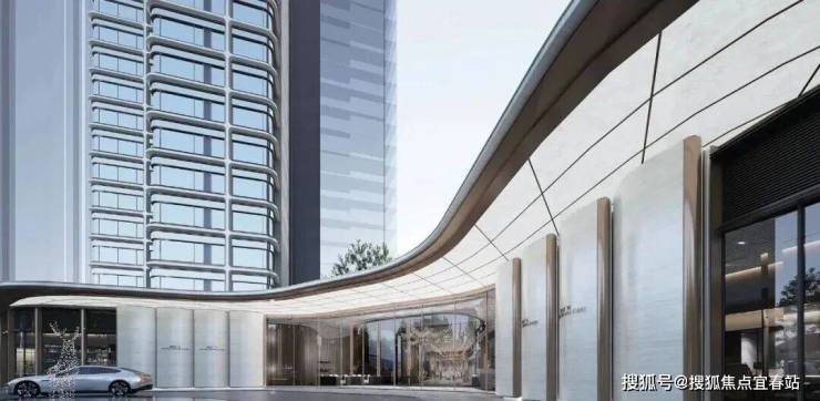 长达约120米弧形主入口界面,城市级封面门庭,集萃名贵奢石臻造,铺陈都会风华,礼遇当代门庭,呈现繁华CBD里的曼妙意境。