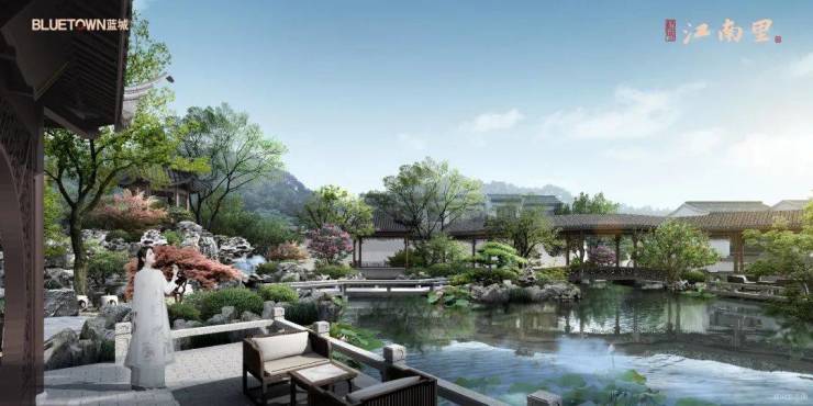 蓝城·江南里,是生长在当代的园林艺术杰作。师法苏州拙政园气韵,匠筑“五境”园林:一境山水入画,引自然诗意栖居;二境门仪迎客,尊崇礼序自此开启;三境隐秀浮屿,叠石理水尽显巧思;四境园藏天地,景深无限引人探幽;五境曲巷人家,烟火温情萦绕巷陌。约1500m²的中央庭院,以灵动水景为魂,缀以亭榭楼阁,打造金水桥、四水归堂、宴宾台、烟波坊……十二处江南名景如珠玉散落,步移景异,俯仰皆成画卷。