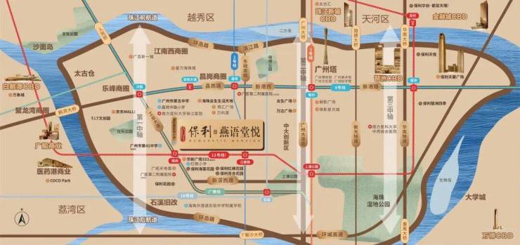 项目坐落于工业大道中,背靠珠江后航道,傲立于海珠新活力文商旅融合圈与广州市“首个”后航道服务型制造创新带交汇的核心地带,海珠后航道将成为海珠未来唯一连片开发的豪宅板块。