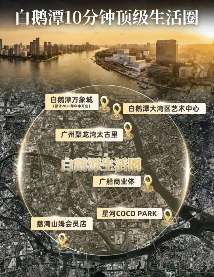 项目约90%产品可望江,最宽享约800米三江汇聚,北临白鹅潭水域,对望沙面岛上的白天鹅宾馆;东北向尽赏羊城八景“鹅潭夜月”;西北向观后航道与西航道的宽阔江景画卷