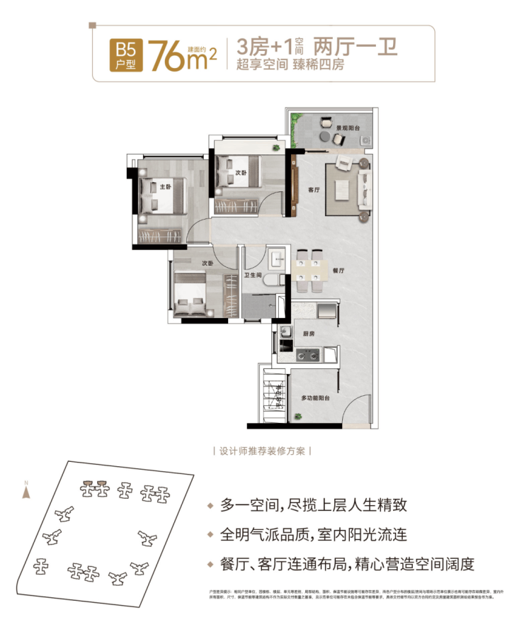 🔅约76-88㎡3房+1空间、119-194㎡4房+1空间至五房,正南向阳光户型,+1空间更实用。