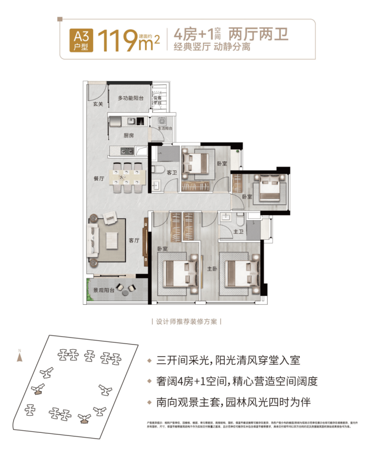 【119㎡:4房+1(空间)2厅2卫】(横厅)