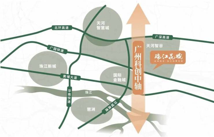 🔅珠江花城占位广州第三科技中轴,毗邻天河智谷。茅岗路一线直达鱼珠CBD,直线距离约6km享珠金琶三大CBD繁华生活。