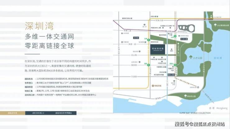 【交通-零时差生活圈】:深圳湾CBD正轴,临近深圳湾口岸,四横四纵的发达路网,三地铁交汇,世界级无界国际交通网络,尽享最高效世界级生活品质及商务效率。