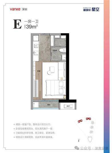 公寓部分(推广名为V寓)的主力户型则建筑面积约为39至56㎡,主要为一至二居室。