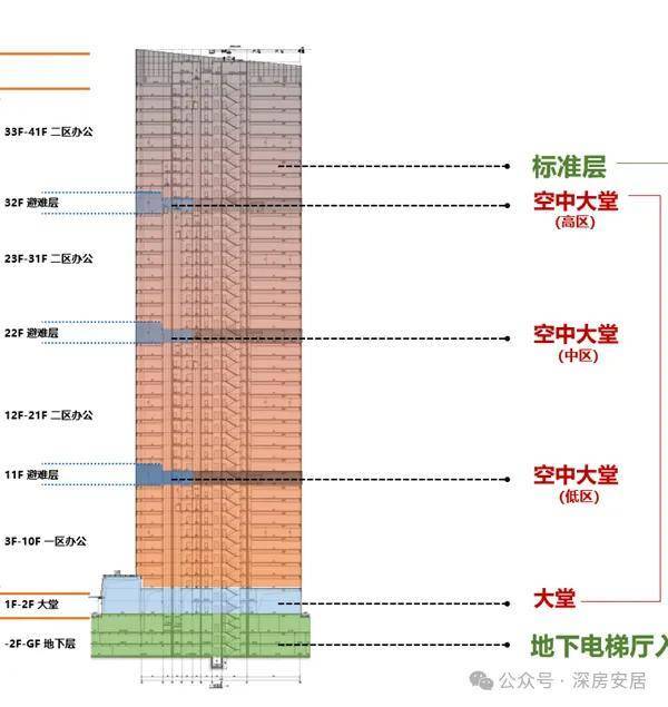 公寓部分,四单元46层,9梯34户;五单元47层,9梯32户,层高2.95米。