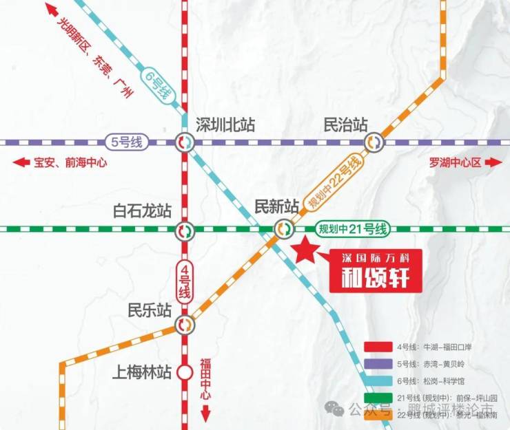 地铁-地铁线路密集: 1站深圳北,2站福田。4/5/6/21(规划中)/22(在建中)号线,5条地铁环绕;项目距离4号线白石龙站直线距离约600m,便捷通达;