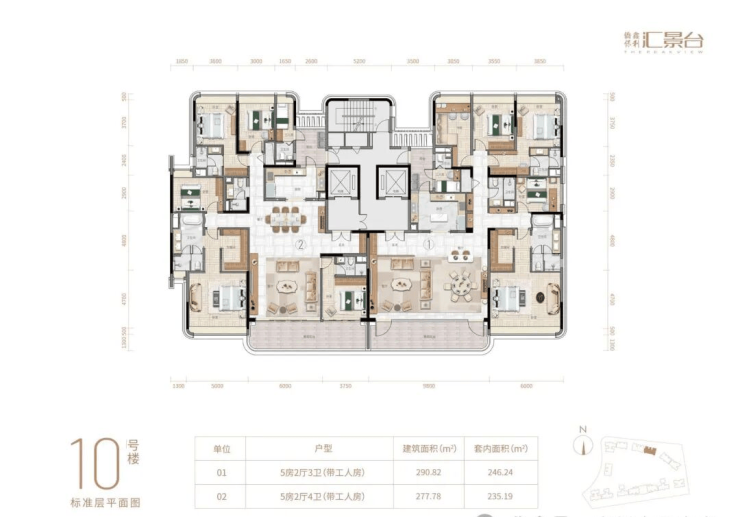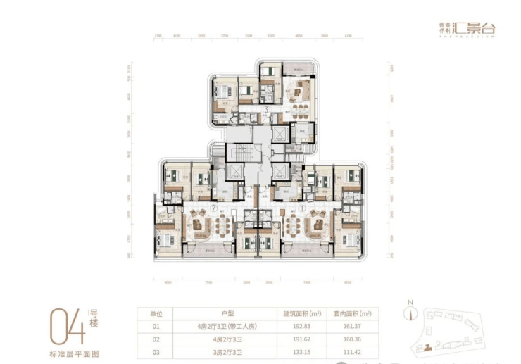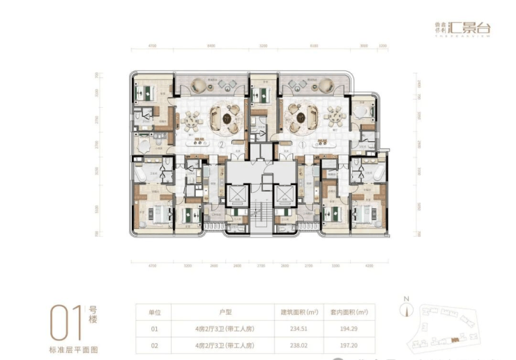 主力户型面积在123-352平方米之间,主打三至五房,户型实用率高达82.8%。部分户型拥有270°极致观景台,并配备了广州首例电动外遮阳系统,让业主在家中就能欣赏到城市的美景。