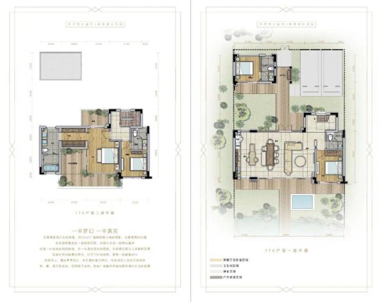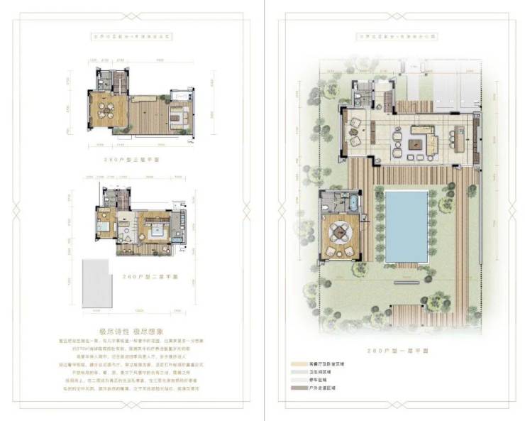 建面约130-170-260平合院墅,采用主附楼设计。