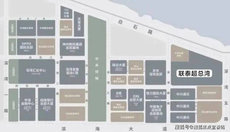联泰超总湾(又称联泰深超总)是位于深圳湾超级总部基地(深超总)核心区域的高端城市综合体项目。深超总片区总面积约117公顷,规划总开发建筑面积高达520万平方米,是深圳当前定位最高、分量最重、影响最大的重点建设片区之一。该区域总投资额达3000亿元,每平方公里投资强度约2564亿元,已吸引招商银行、大疆、中兴通讯、京东、腾讯等20余家世界500强及行业巨头总部入驻,预计未来将贡献深圳近五分之一的GDP,堪称"深圳版曼哈顿"。