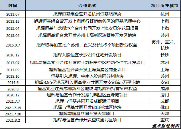 据焦点财经不完全统计,从2013年合作开发的杭州恒基旭辉府开始,在内地联手合作十余次,合作项目遍及上海、杭州、苏州、长沙、安徽、厦门、成都等一二线城市。
