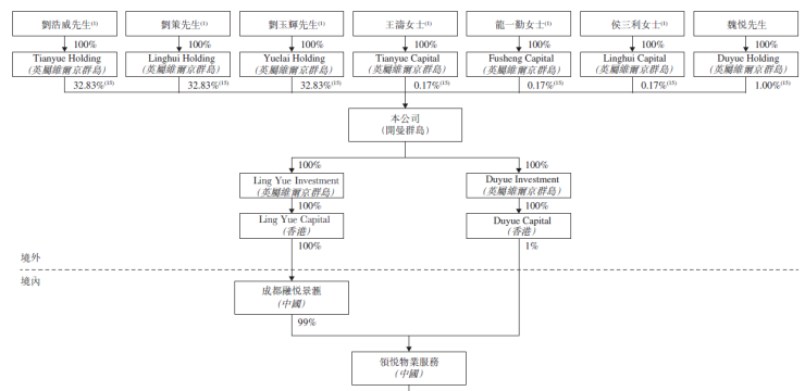领悦服务的关联房企为领地集团,领地刘氏家族刘浩威、刘策、刘玉辉、王涛、龙一勤和候三利合计持有领悦服务99%股权,魏悦持有1%股权。
